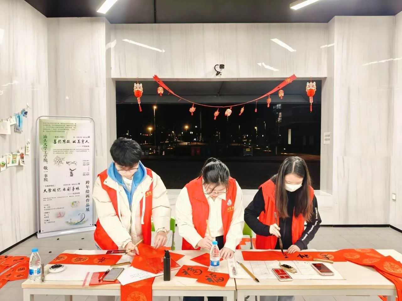 The Calligraphy and Painting Association conducted on-site creation of square "Fu" (blessing) calligraphy works and Spring Festival couplets. It also provided basic calligraphy lessons, guiding students on correct brush holding and movement techniques, as well as skills for writing the "Fu" character, to promote the exchange and learning of calligraphy art. This highlight of the event not only allowed students to learn various calligraphy skills, but also immersed them in the charm of traditional Chinese culture, feeling the New Year blessings conveyed by the character "Fu" in every stroke.