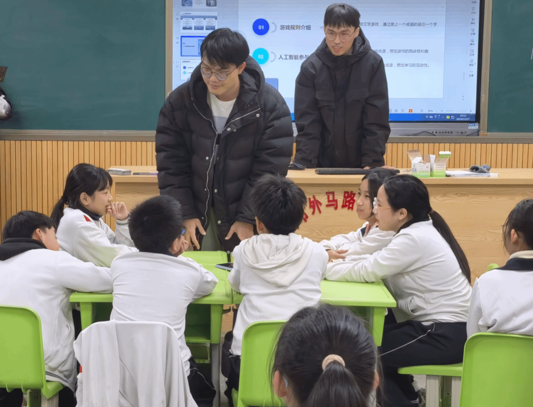 The whole class was divided into 6 groups, each equipped with a Party member volunteer as a instructor. All members of each group worked as a whole to compete with an AI system in idiom solitaire. The students brainstormed, spoke one after another, and racked their brains to think of the next idiom. The classroom soon boiled with the children's excited discussions and cheers. Some groups cooperated tacitly and took turns to connect idioms; some groups studied collectively to discuss the best answer. This unique human-machine confrontation not only tested the students' knowledge reserve, but also cultivated their team spirit.