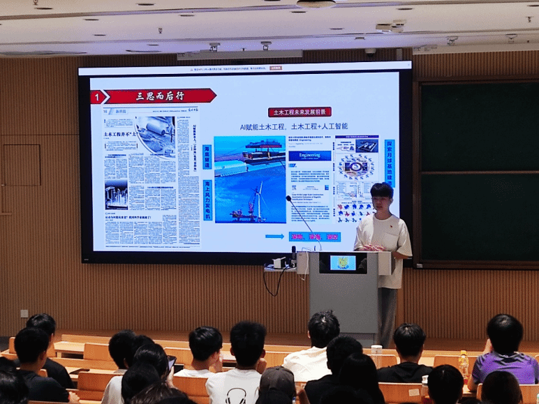 为了让活动更加生动有趣,特别设置了“党史飞花令”互动环节,在轻松愉快的氛围中激发新生的创造力与团队合作精神。本环节围绕“土木工程”四字关键词展开党史知识抢答,不仅考验同学们的反应速度,更展现了大家对党史的记忆与理解。同学们踊跃参与、积极抢答,现场气氛热烈。