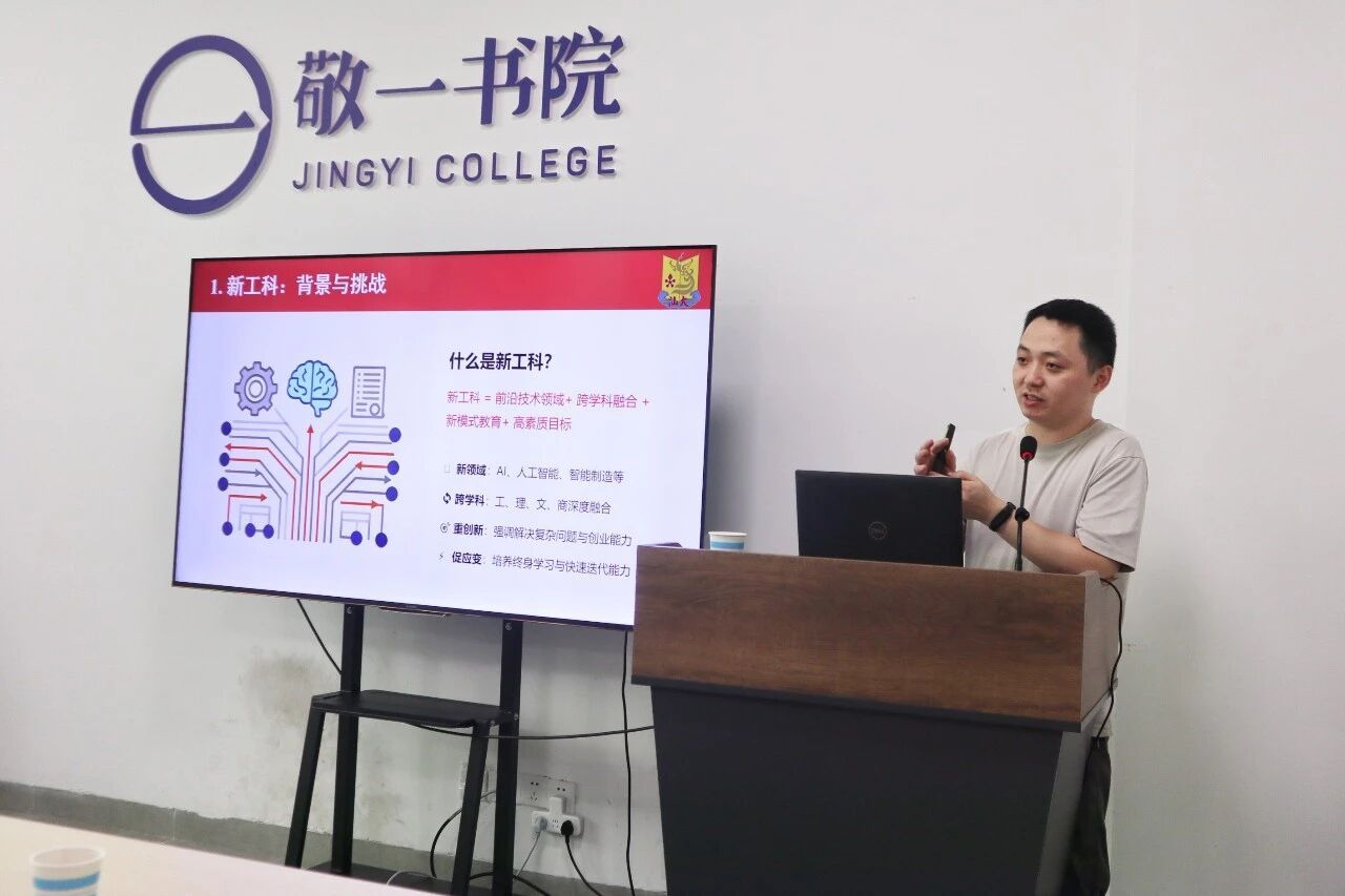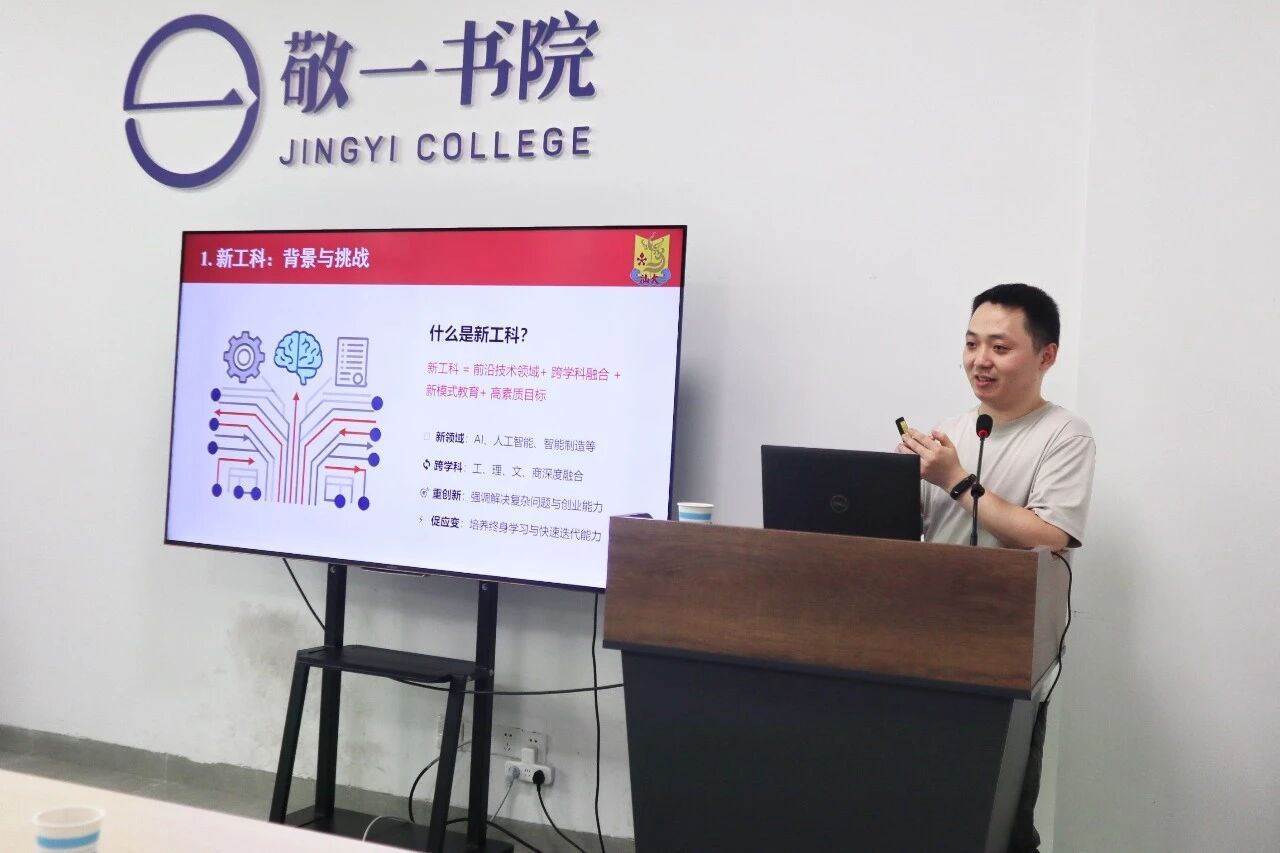 活动伊始,吴嘉俊对新工科背景进行解读,指出前沿技术推动工科变革,粤东企业亟需复合型人才。他强调在此背景下,大学生需转向自主学习,培养跨学科思维与终身学习能力。