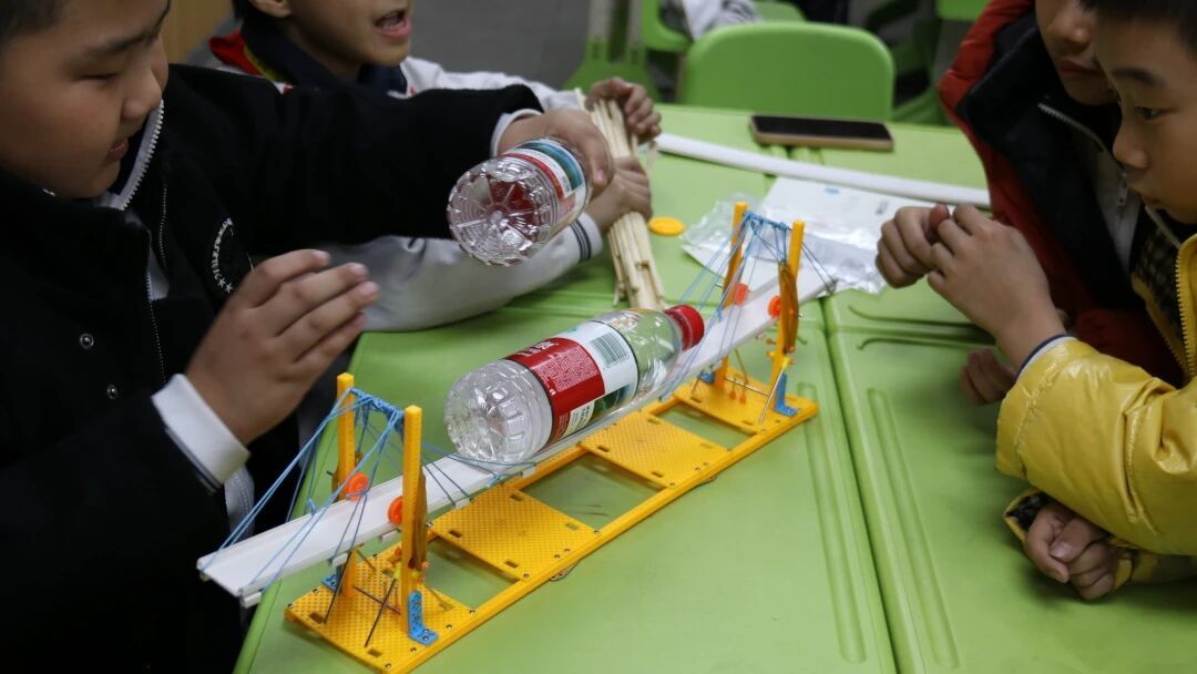 通过亲手拼装梁桥的支座与主梁、组合拱桥的拱圈与桥台、布置斜拉桥的索塔与拉索、以及悬索桥的主缆与吊索,小学生们直观地感受到不同桥型在结构与受力上的特点。在模型逐渐成型的过程中,抽象的“力学传递”“结构稳定”等概念,也化为手中可触摸、可观察的实体。