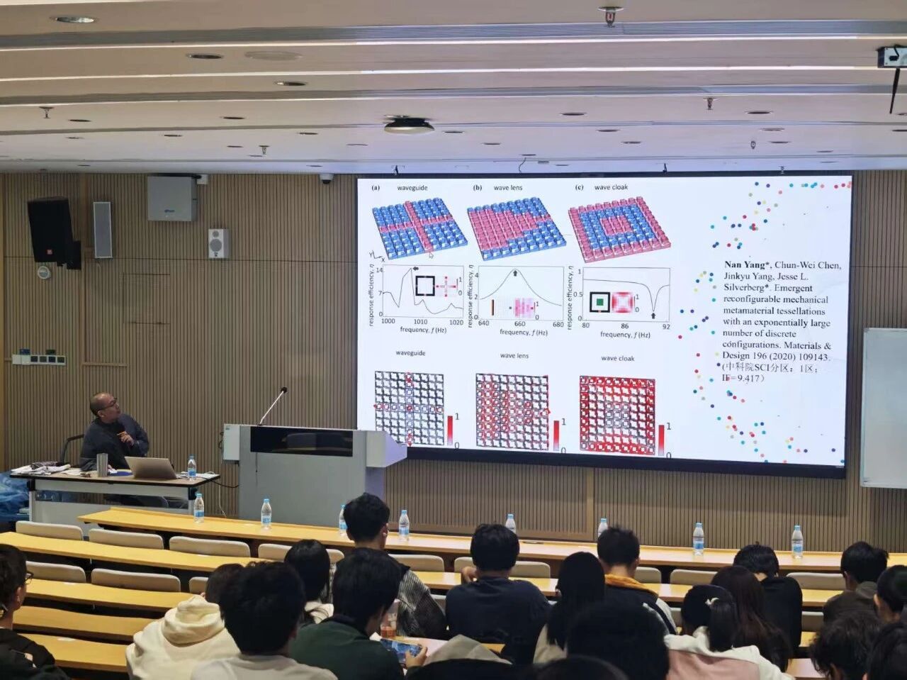 在此次讲座中,杨楠教授首先提出“何为机械超材料?”的问题,引导同学们进入机械超材料的世界,以“材料”为切入口正式进入主题内容。