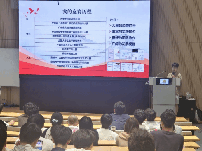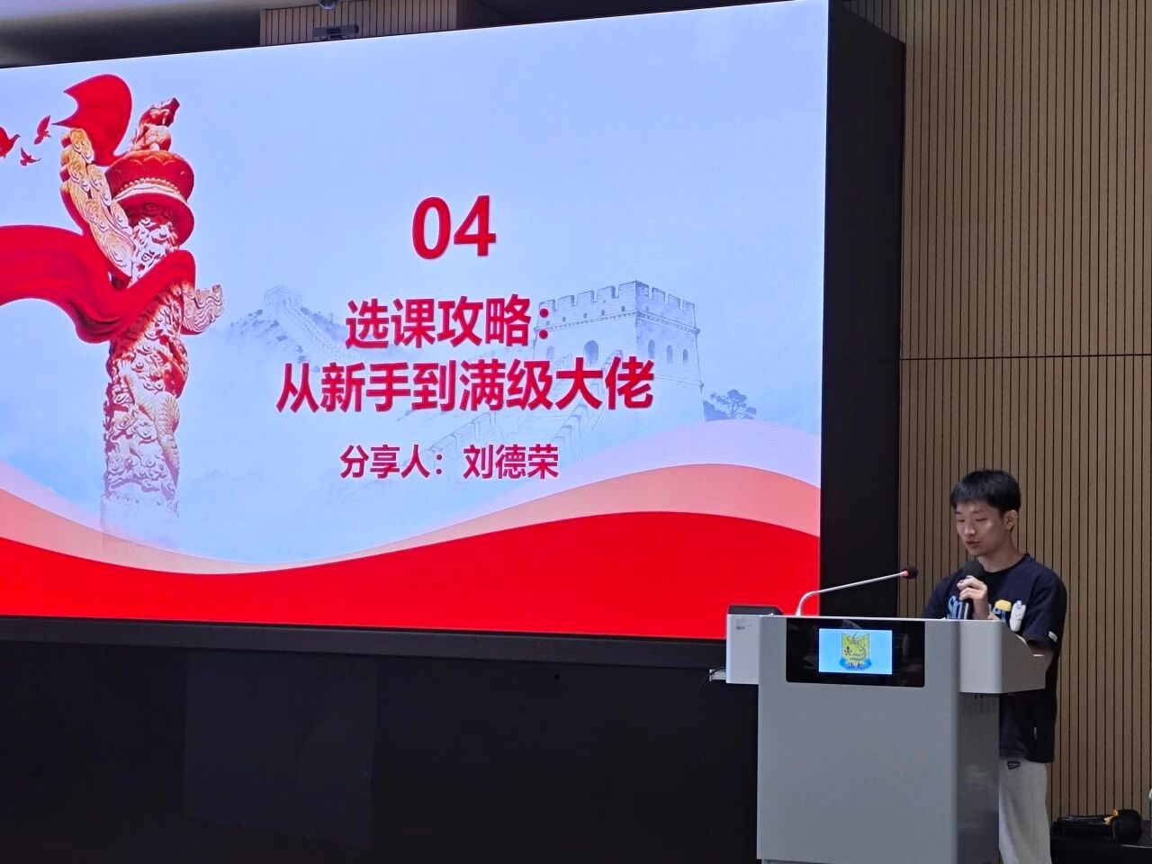 已保研至深圳大学的中共党员刘德荣,以 “从新手到满级大佬” 为切入点,带来实用的 “选课攻略”。他教大家先吃透《培养方案》,明确公共必修、专业选修等学分要求;再注重《开课计划》,避免错过核心课程。实战环节中,他分享 “初选抢公选课、复选拼手速、调整找教务员” 的技巧,还提醒新生警惕 “信息黑洞”、“选课刺客”等问题。