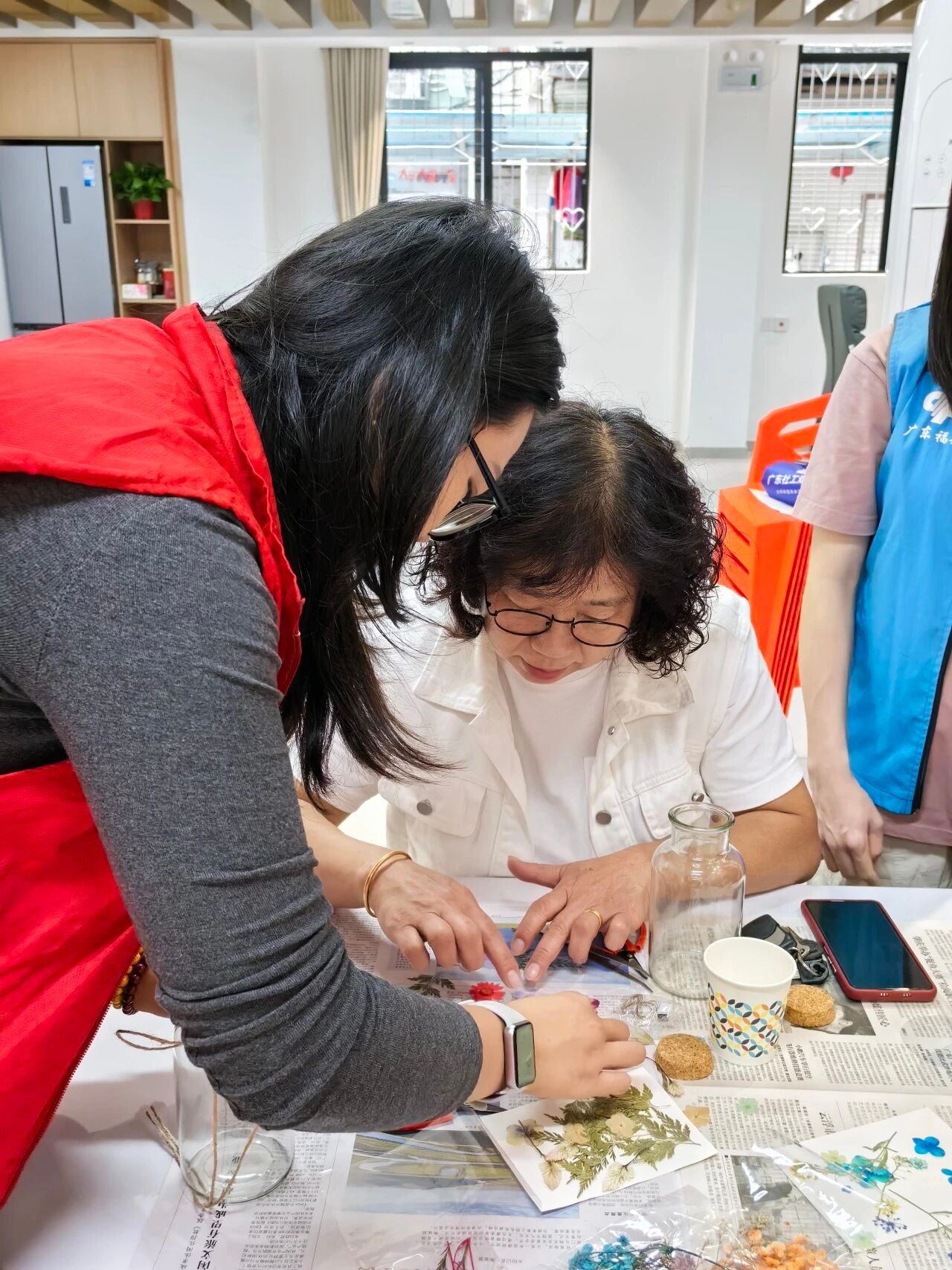 为了让社区老年群体在自然美学中感受创作乐趣,增进邻里温情与代际联结,2025年11月12日,汕头大学工学院“智享科技”突击队携手大华街道工作人员,在大华街道老年人活动中心成功举办“植趣手作,耆乐时光”长者植物手作小组系列活动第二期——“瓶添雅趣,花漾年华”老年压花玻璃瓶植作手工活动。活动以压花艺术为纽带,更融入灯带设计,让自然之美与光影创意交织,为社区老年人打造了一场兼具静谧质感与温暖氛围的文化体验。