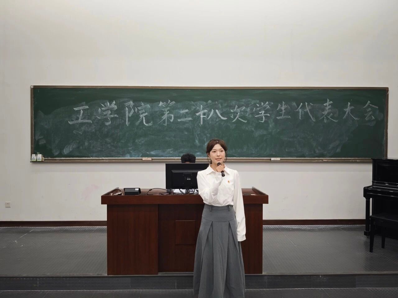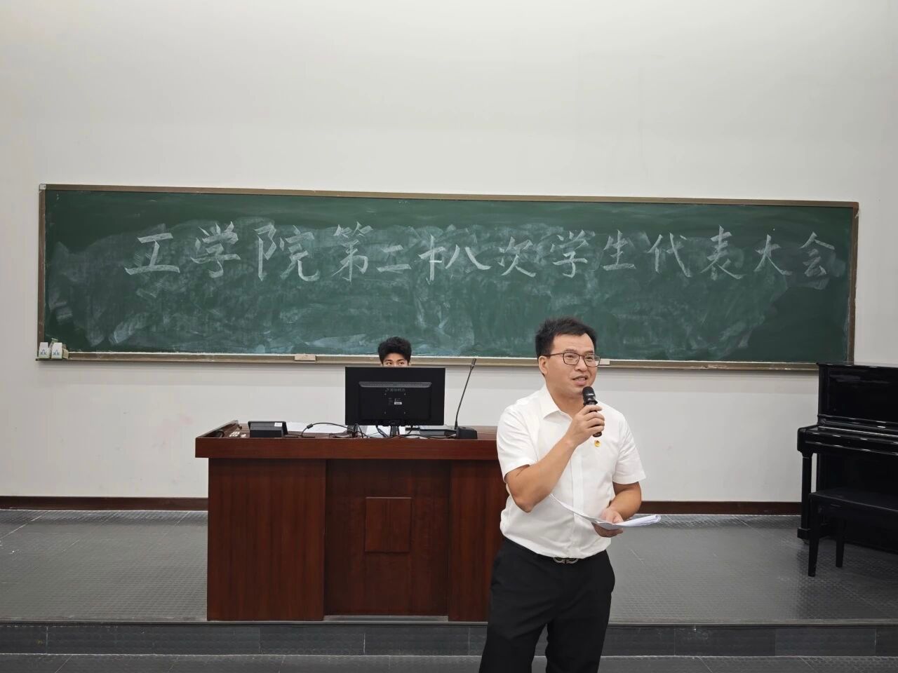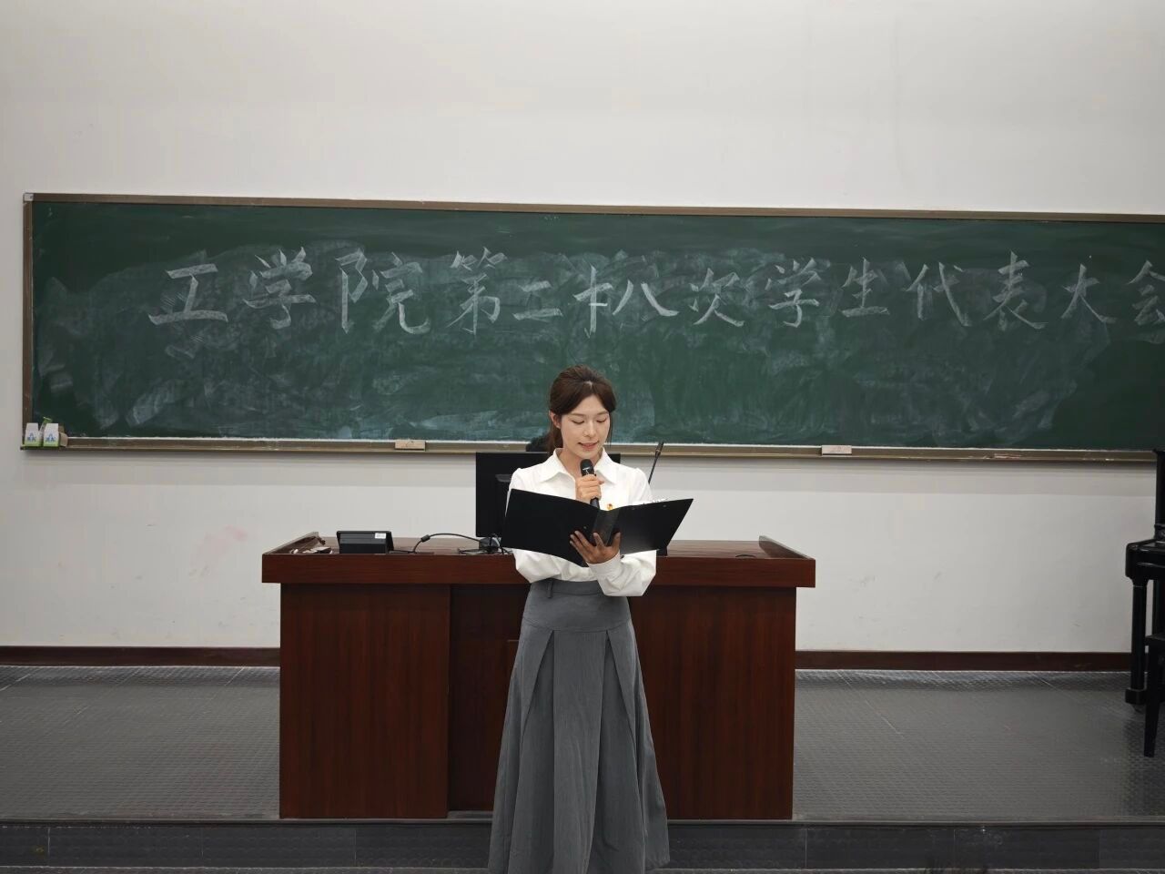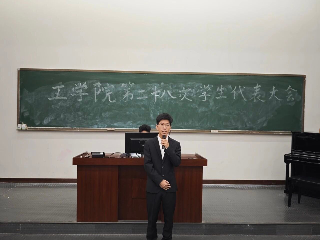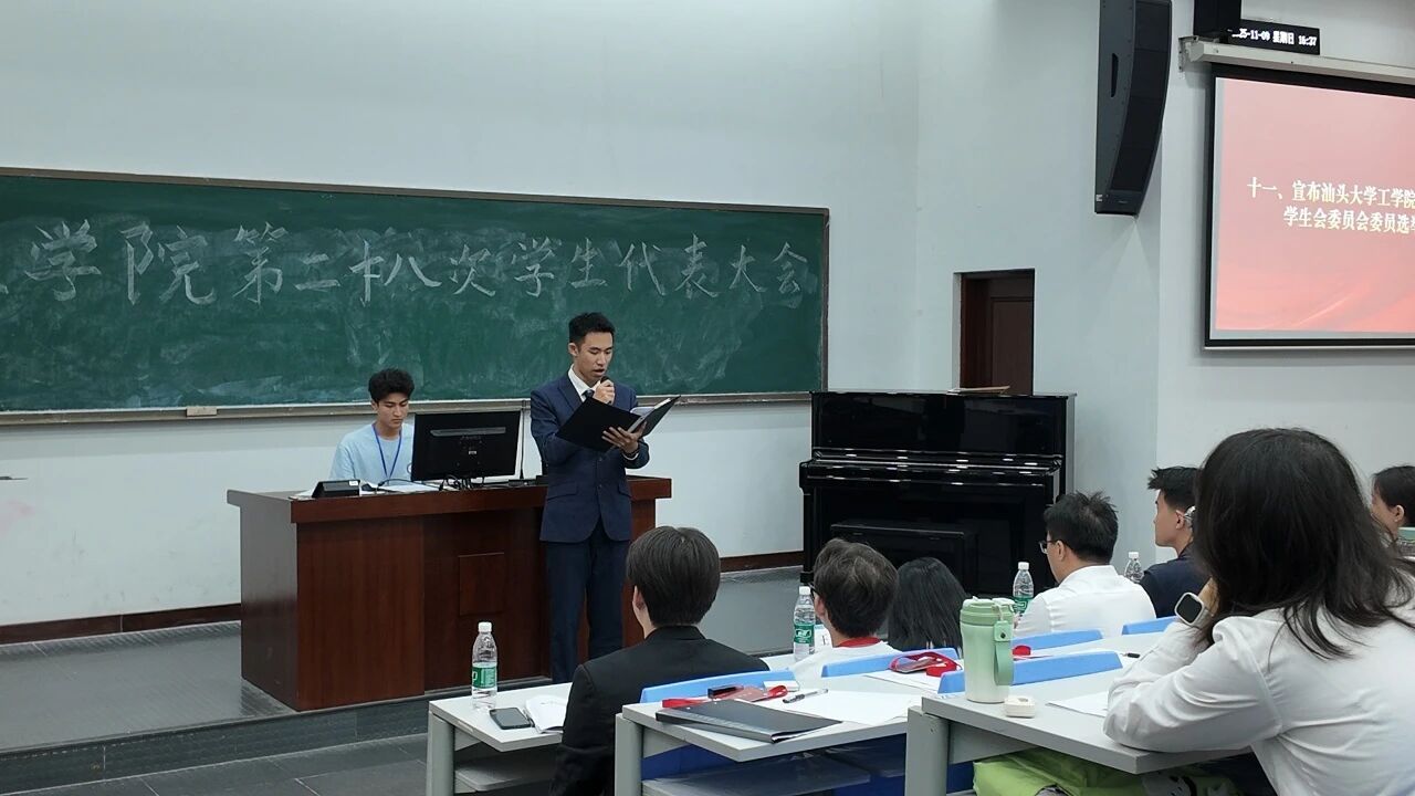 2025年11月9日,汕头大学工学院第二十八次学生代表大会在桑浦山校区讲堂一顺利召开。