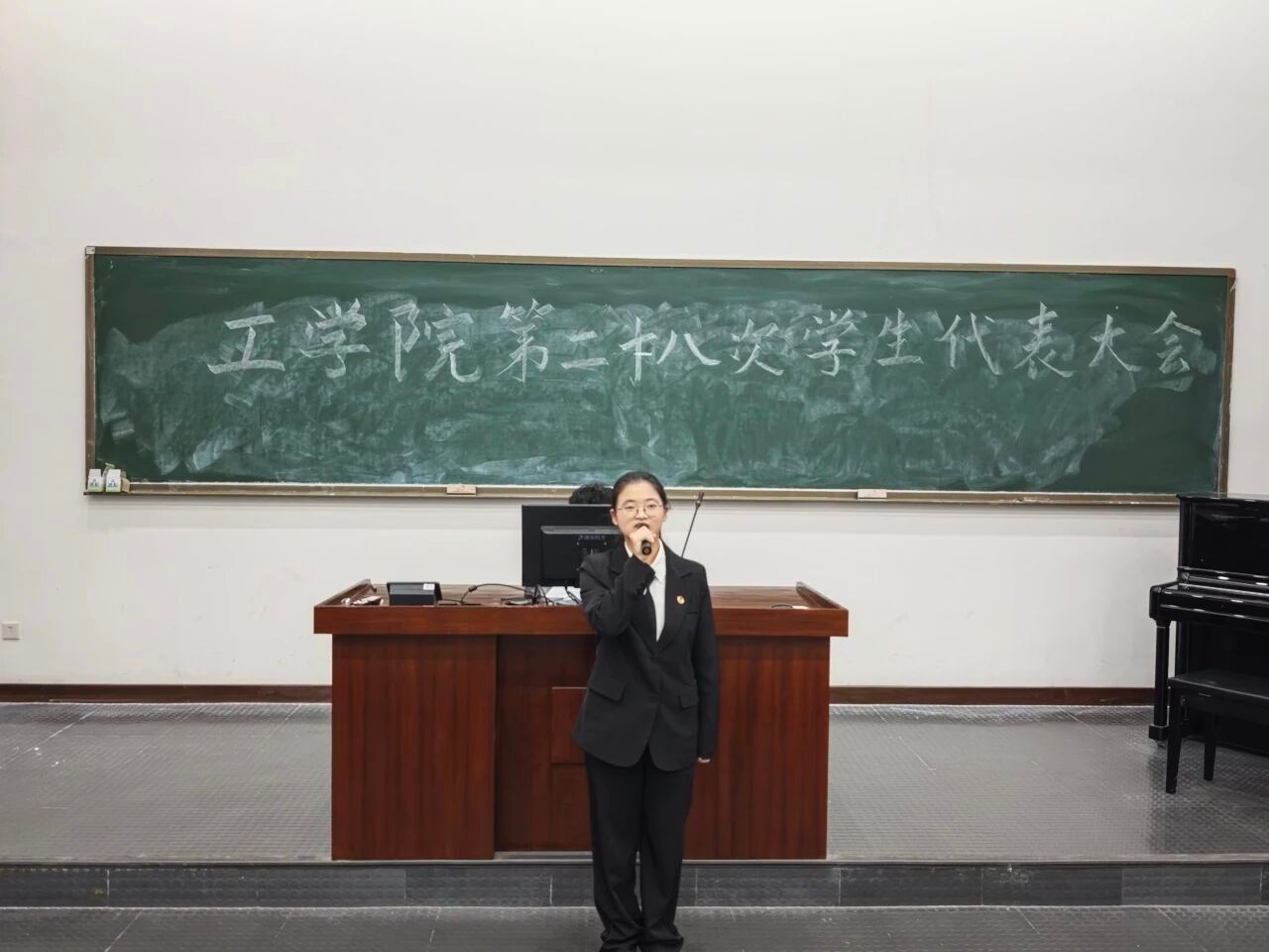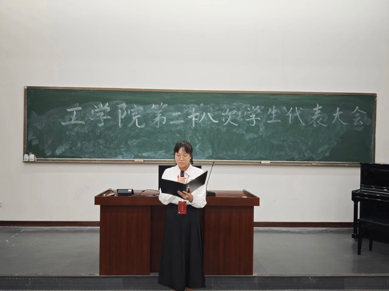 奏唱国歌,主持人尹明达宣布工学院第二十八次学生代表大会正式开幕。