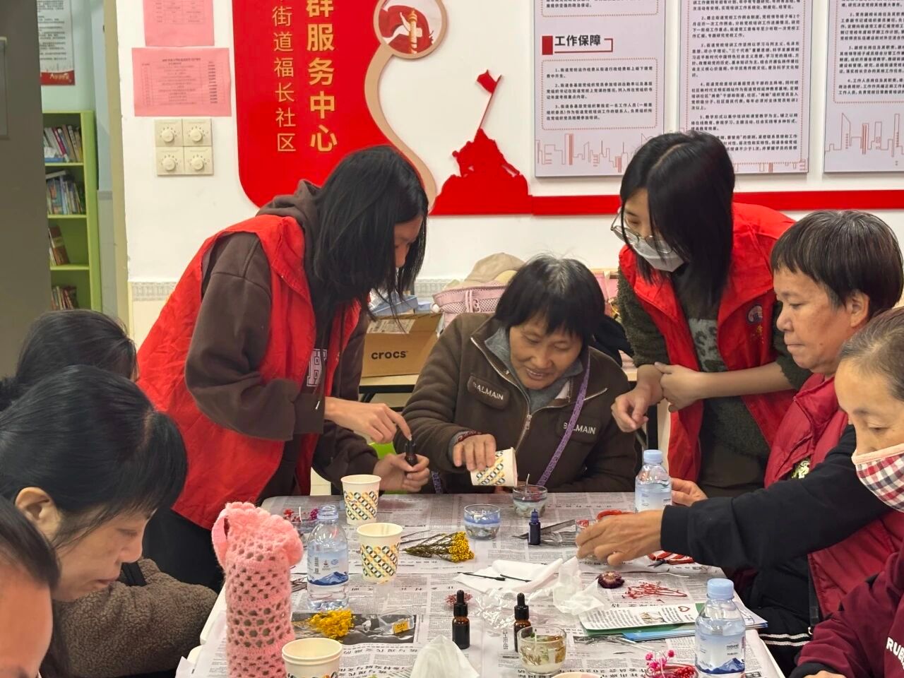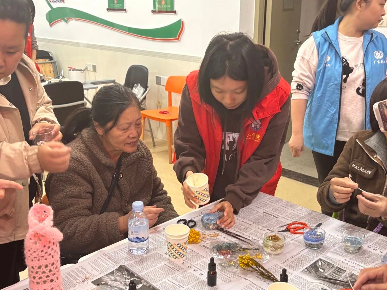 为弘扬尊老敬老的传统美德,丰富社区老年人的精神文化生活,汕头大学工学院“智享科技”突击队于2025年11月19日携手大华街道福长社区党群服务中心,成功举办“‘晶’彩时光,暖烛相伴”水晶蜡烛杯老年手作活动。活动以“情感传递与创意手作”为主题,将晶莹剔透的海洋元素、七彩斑斓的花草元素与温暖治愈的蜡烛制作相结合,让老年人在动手创作中感受艺术与情感的交融,共度一段充满温馨与成就感的时光。