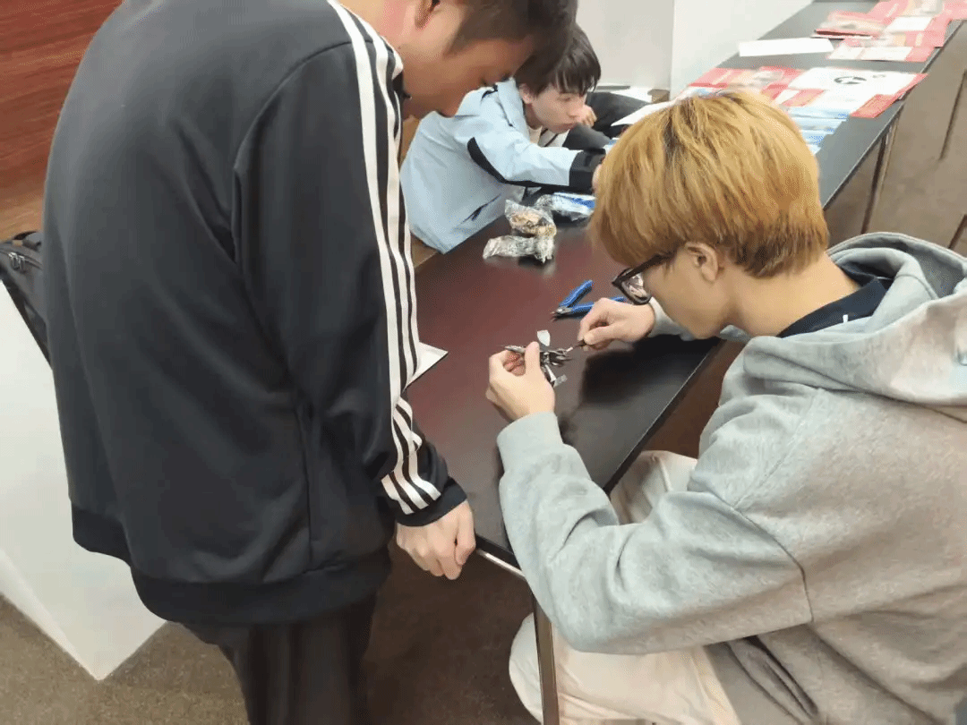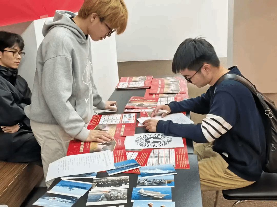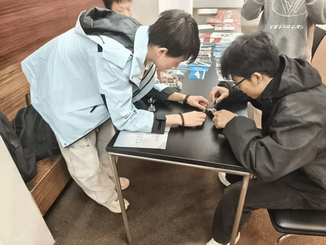 活动现场还设置了军事模型拼装赛,军事模型拼装赛更是创意与动手能力的比拼。同学们分组协作,专注地拼装驱逐舰、战斗机等军事模型。
