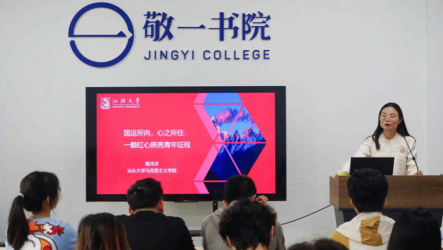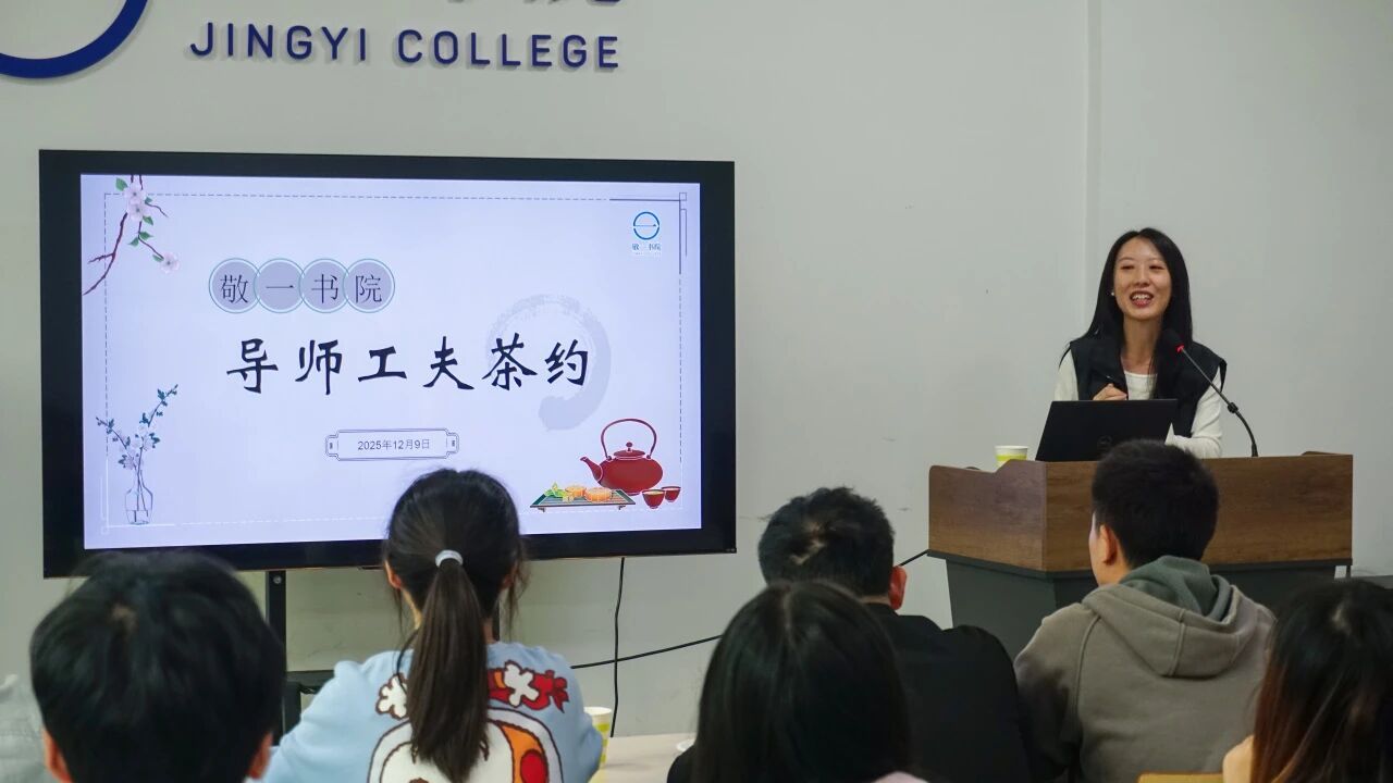 为践行“一线规则”,探索师生社区互动模式,营造师生平等交流,深度对话的育人氛围,打造师生成长共同体,进一步深化双院协同育人,落实立德树人根本任务,引导学生领会茶道文化的人生哲学,弘扬“潮茶文化”,引导大学生树立正确的成才观、人生观,培养社会责任感,积极培育和践行社会主义核心价值观,增强历史自觉和文化自信,促进建设“红色书院”,12月9日下午,敬一书院举办了第14期“导师工夫茶约”活动,汕头大学马克思主义学院讲师蒋洋洋受邀出席,围绕“国运所向,心之所往:一颗红心照亮青年征程”的主题与同学们进行分享,活动由敬一书院辅导员王婉主持。