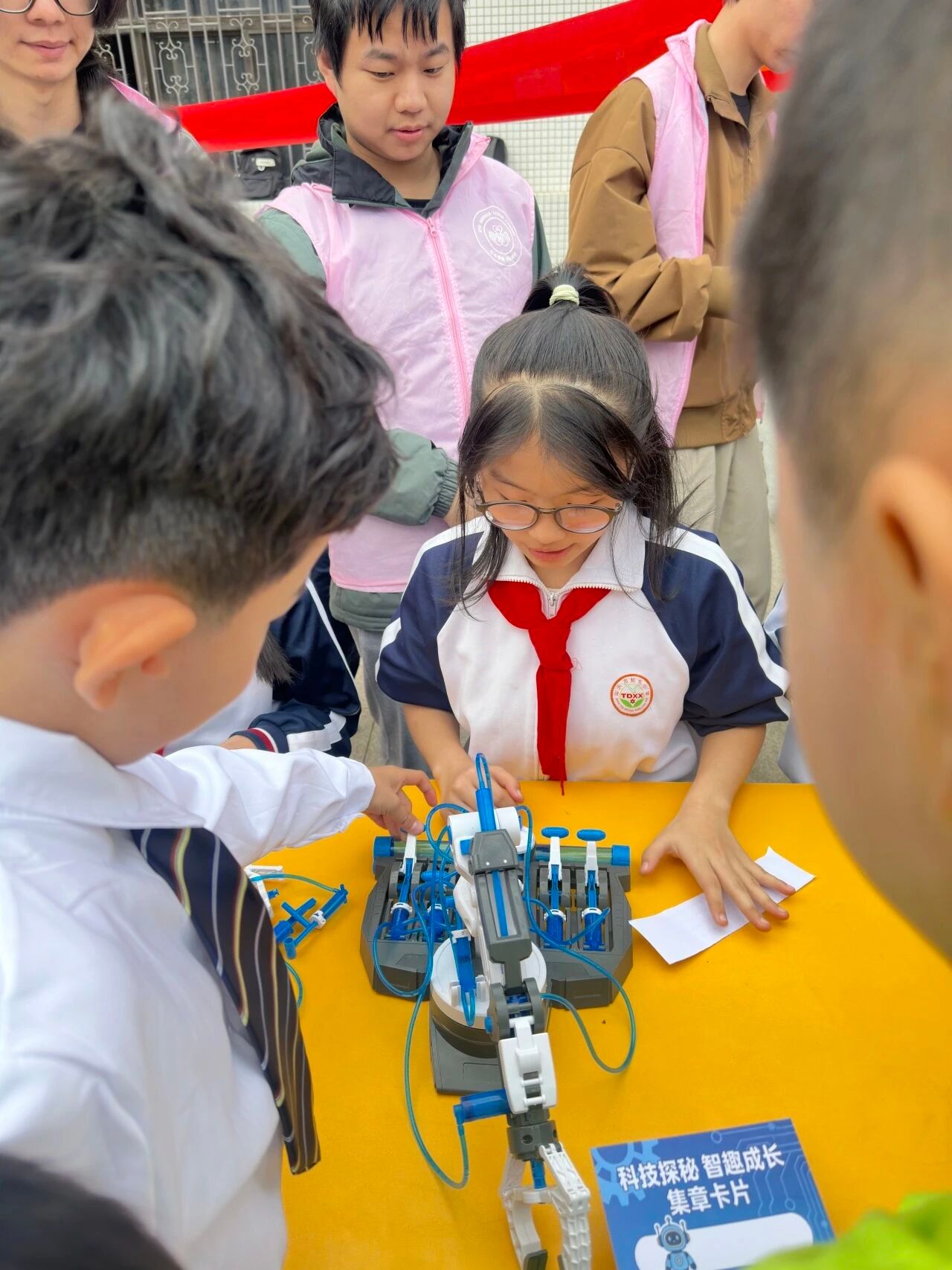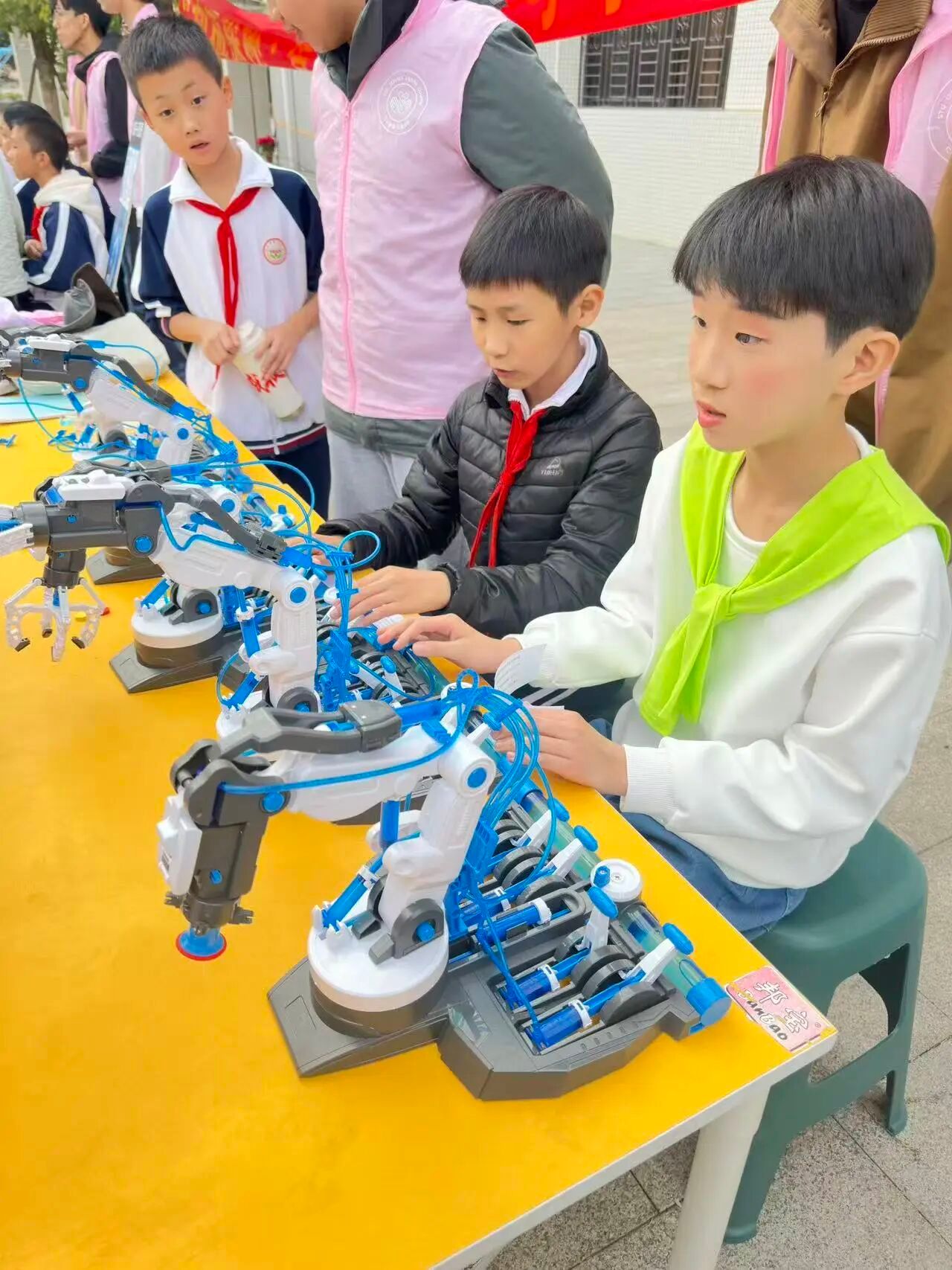 为响应加强青少年科普教育的号召,激发少年儿童科学兴趣,“机械探秘,智趣成长”课程组前往鮀东学校,开展了一场别开生面的“智能制造进校园”活动。活动通过“趣味讲解+动手实践”的形式,将机械原理转化为可互动、可操作的学习体验,让小学生在动手动脑中感受机械科学的魅力。