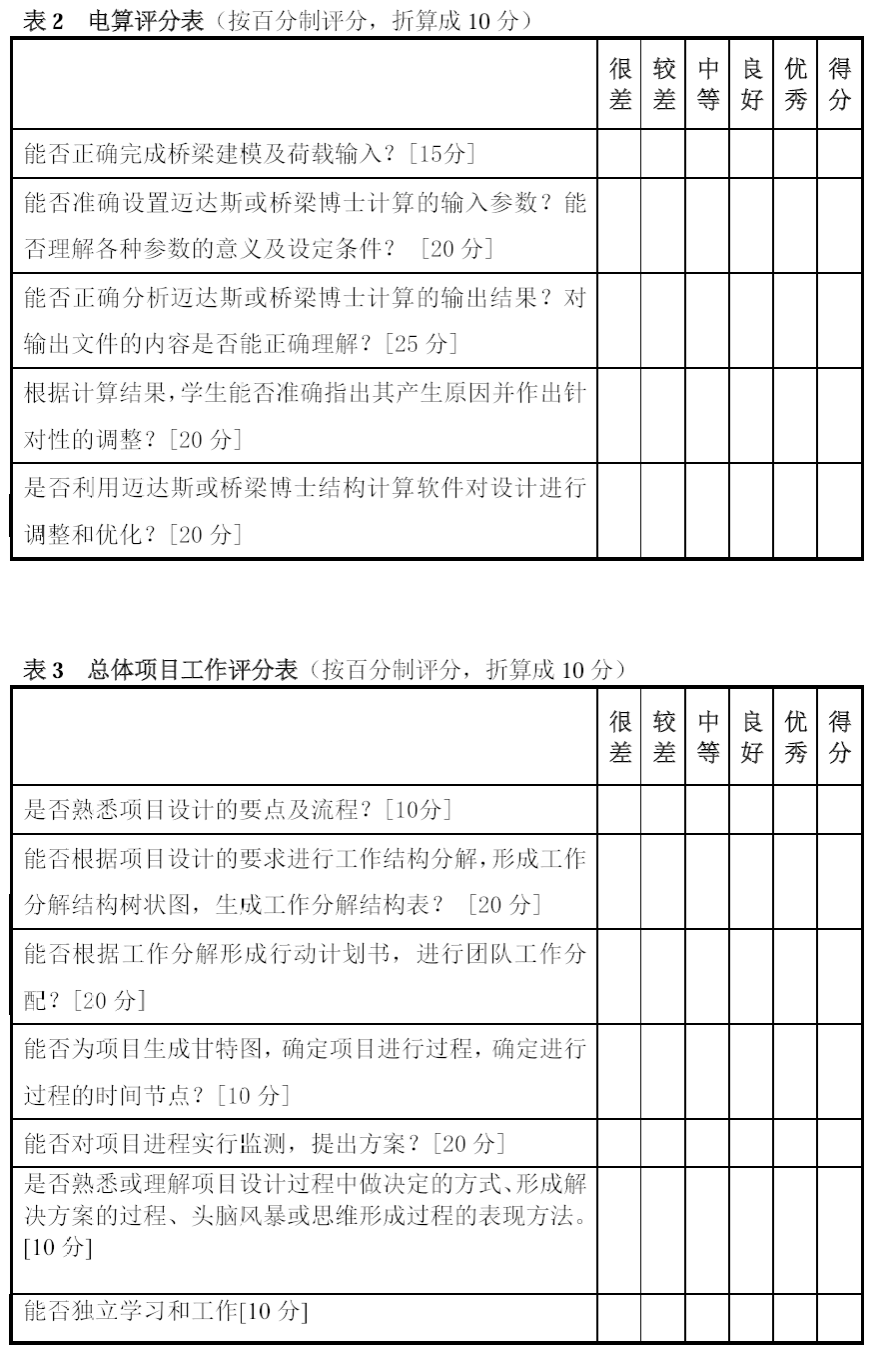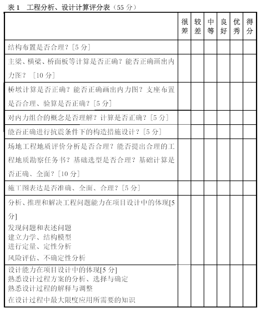评分标准方面,以案例分析为例,成绩包含6个模块,分别是工程分析设计计算、电算、总体项目工作、团队工作、交流报告答辩和个人素养,设计了科学合理的评分标准,全面考察学生的知识能力素养。