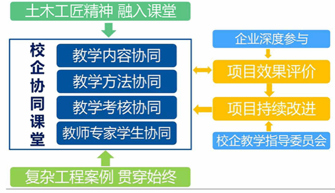 基于建构性教学观,构建了新工科背景下基于校企合作的实践教学及评价模式,同时引入了CDIO工程教育理念,以项目为载体,以能力为导向,对课程配套的课程设计进行系统的创新改造,创立了由一、二项目(团队项目,学生之间的合作与交流)共同支撑的贯穿全过程能力培养的渐进层级式项目新体系,实现校企教学内容、方法、考核协同,并引入思政元素,复杂工程案例贯穿始终。