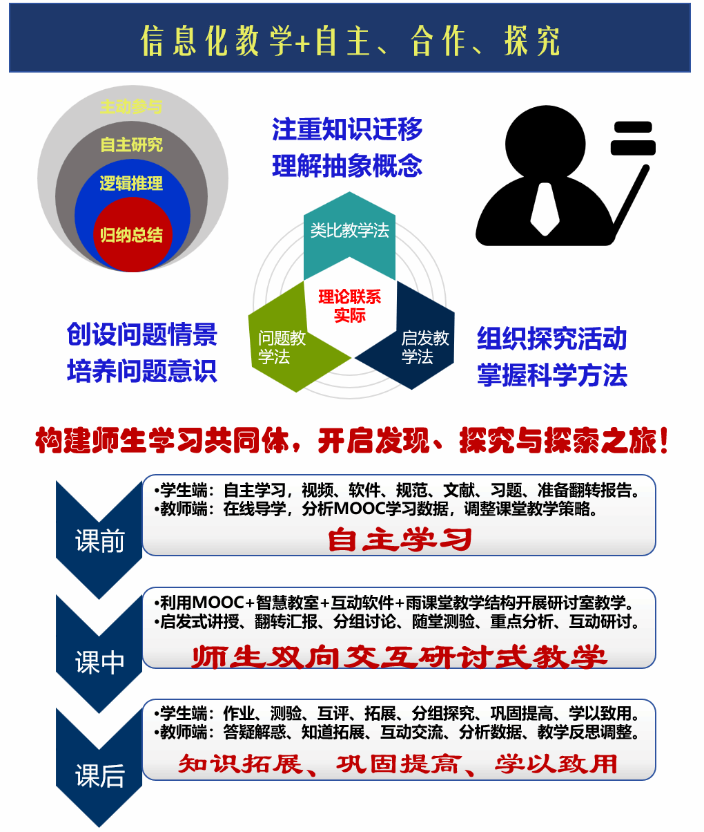 充分利用信息化教学手段,基于“建构性教学观”,有机穿插融合问题导入模式、互动研讨模式、思育智育融合模式等先进教学方法,引导学生主动参与、自主探究、逻辑推理、归纳总结,构建师生学习共同体。
