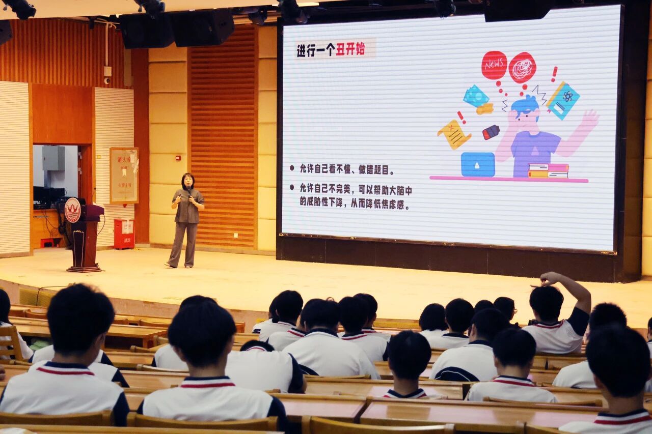 本次讲座以《原来不是我太弱,是焦虑太吵》为主题,围绕高考冲刺阶段学生常见的焦虑、分心、失眠等问题展开,通过互动体验、案例解析和方法指导,引导同学们正确认识焦虑、接纳情绪信号。章妍怡针对学生不同的焦虑表现,分享“微小行动”“五感训练”等实用技巧,帮助学生掌握心理调适方法,增强迎考信心,以更加积极从容的心态投入高考冲刺。