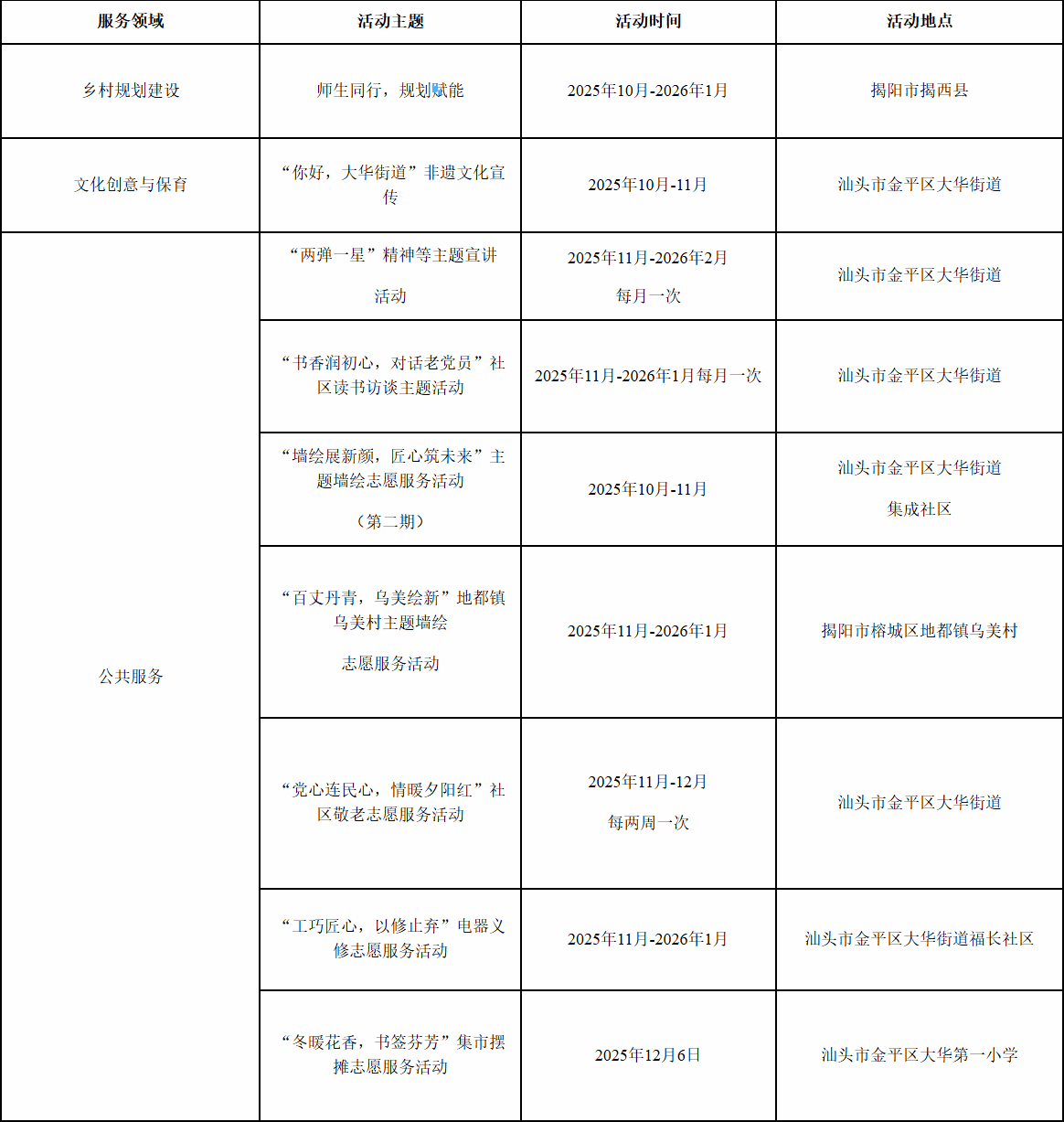 协办单位:汕头大学“星华”大学生实践团、“彩绘华章”突击队、“揭西缘梦”突击队、汕头大学科技创造协会